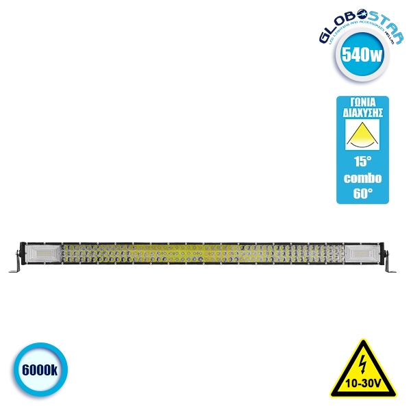 Τεχνικές Προδιαγραφές Μπάρα LED 540W TRI-ROW 7D CREE & SMD 2835 10-30v DC Ψυχρό Λευκό 64800 Lumen GloboStar 05404: