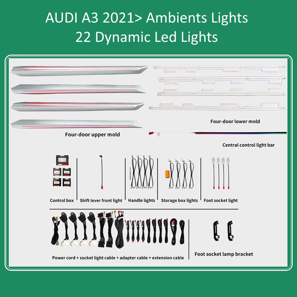- 22 Dynamic Lights (4 door handle lights, 4 door outline lights, 4 door lower lights, 4 door storage box lights, 4 footwell lights, 1 front gear, 1 central control).