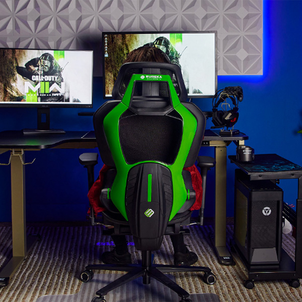 Η ολοκαίνουργια καρέκλα παιχνιδιών Typhon συνδυάζει δυναμικό στυλ εμπνευσμένο από αγωνιστικά καθίσματα και καινοτόμα εργονομικά χαρακτηριστικά, καθώς και ένα υψηλής ελαστικότητας, αναπνεύσιμο πλέγμα για να εξασφαλίσει άνεση μεγάλης διάρκειας για εκτεταμένες περιόδους παιχνιδιού. Με έναν εκτεταμένο αριθμό ρυθμίσεων πλάτης, λαιμού και καθίσματος, το Typhon σάς επιτρέπει να βρείτε την τέλεια εφαρμογή.
