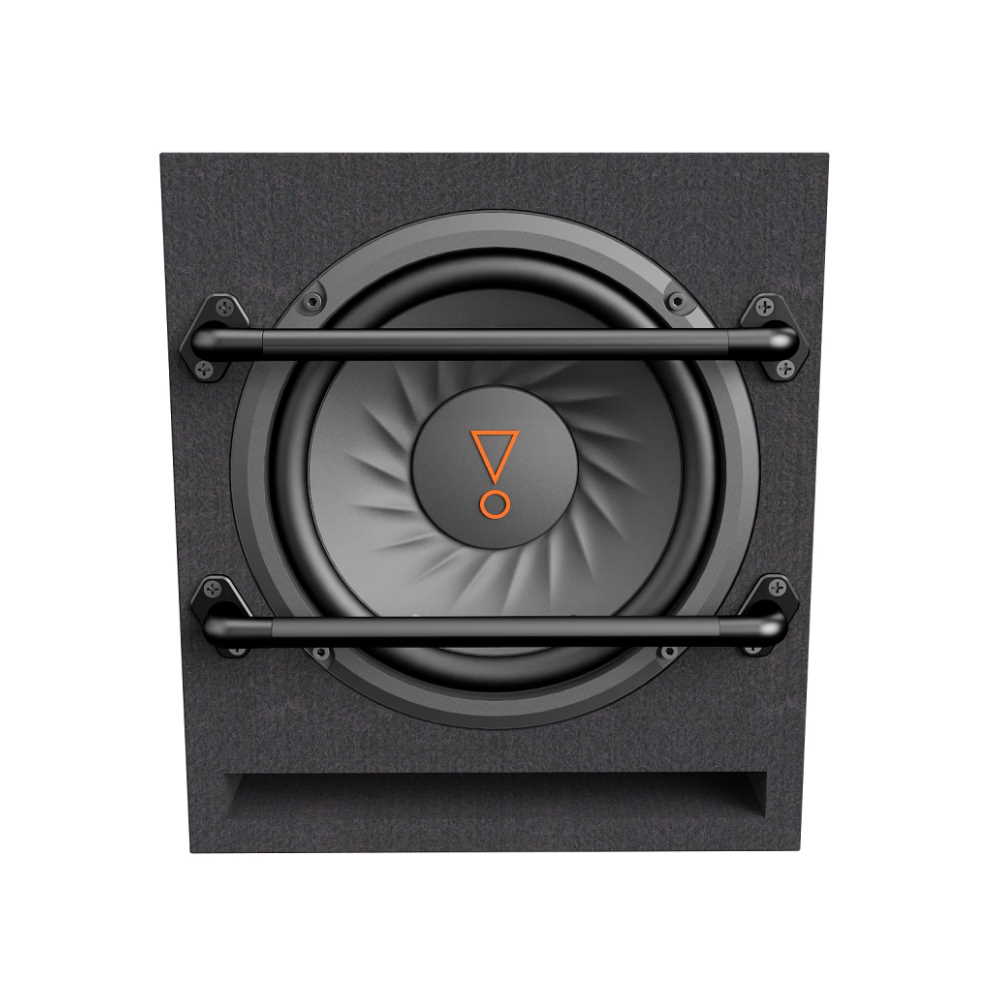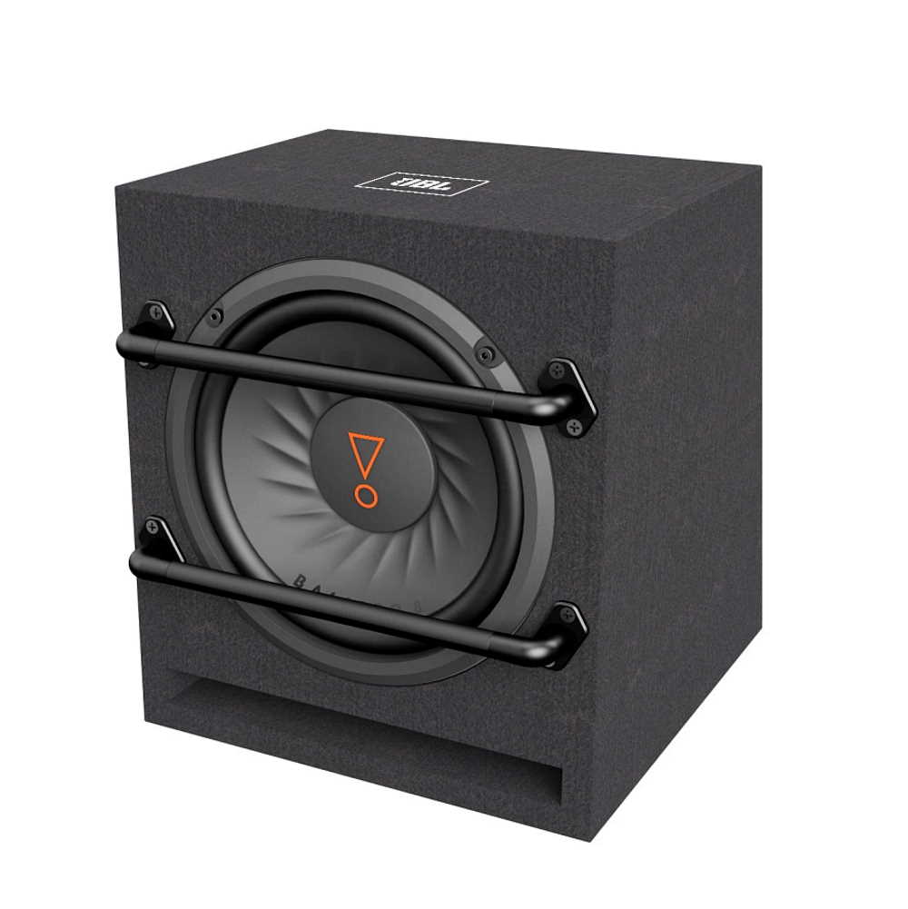 JBL’s jaw-dropping BassPro 8 subwoofer measures less than a cubic foot and delivers an impactful performance. Inside the slot-port enclosure is a system tuned 100 watts RMS class D amplifier and 8″ (200mm) subwoofer. The compact BassPro 8 will provide tight, deep bass in any car audio system. The subwoofer and amplifier have been engineered as a system to ensure great distortion-free bass even at high output levels. The rigid lightweight polypropylene woofer supplies the signature punch and clarity of JBL bass. When it’s time to show and shine, the bass EQ control is good for a 9dB boost. With the legendary JBL® logo stamped front and center on the dust cap and the oversized protection bars, you have a bass system ready to do business